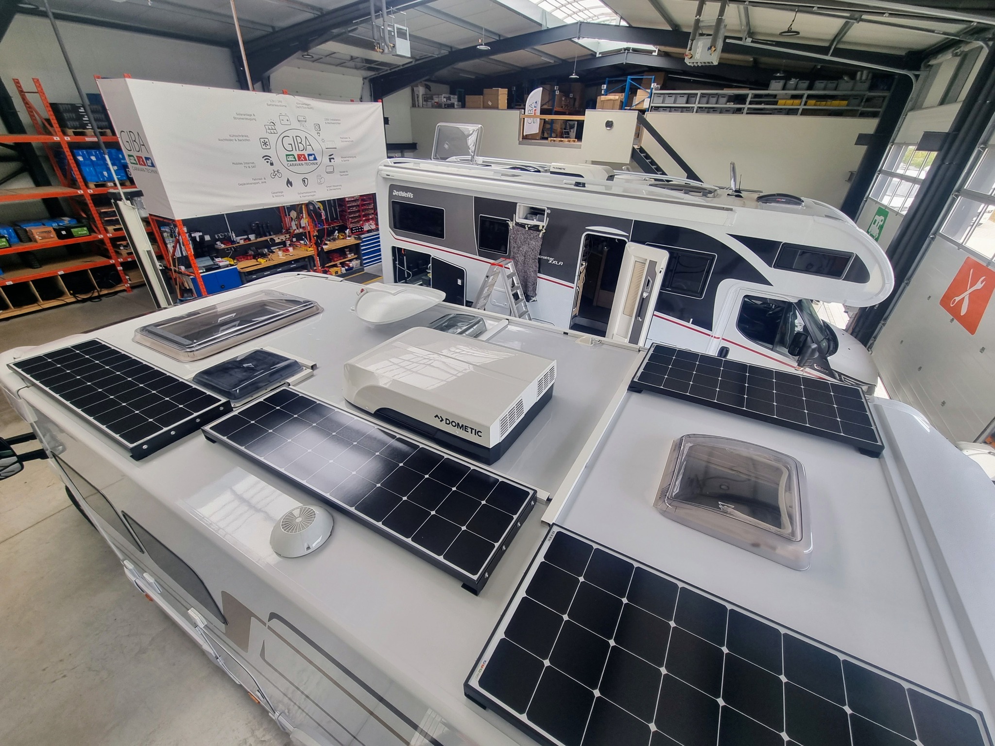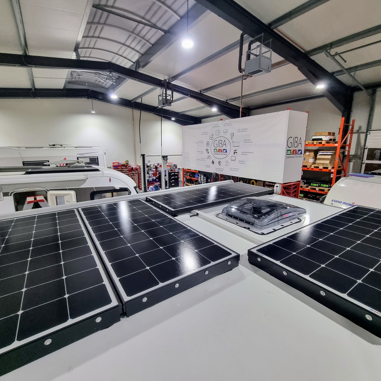 In unserer 900 m² großen Werkshalle im Gewerbegebiet Springe-Völksen realisieren wir mit unserem 16-köpfigen Team Ihre Autarkie-Wünsche rund um Ihr Reisemobil.